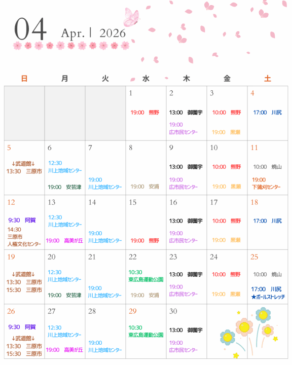 | 2025.04.09 | 【入会金等無し・都度払い制度】 ~レッスン詳細はコチラ~ |