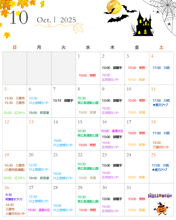 2024.10.19 | 【開催中止のお知らせ】 10月21日(月) 10月22日(火) 施設の点検の為、安芸津、川上会場の開催を中止させていただきます。 |